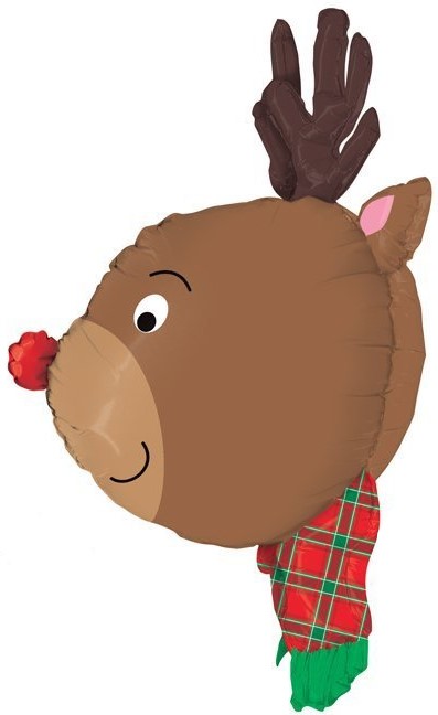Шар фольга фигура голова Новогодний олень Коричневый 3D GR 35'' 89см