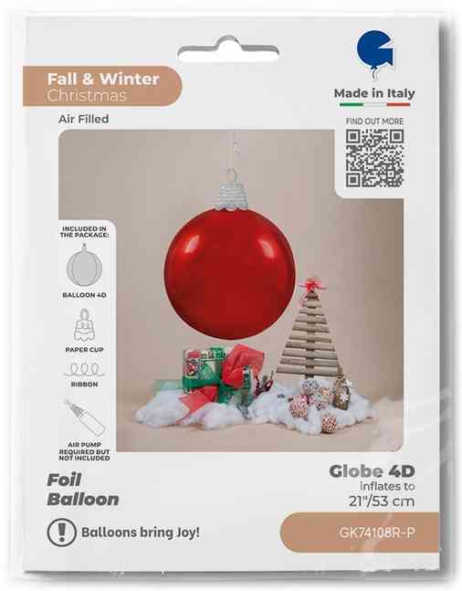 Шар фольга фигура Игрушка елочная красная 21" 38смGR