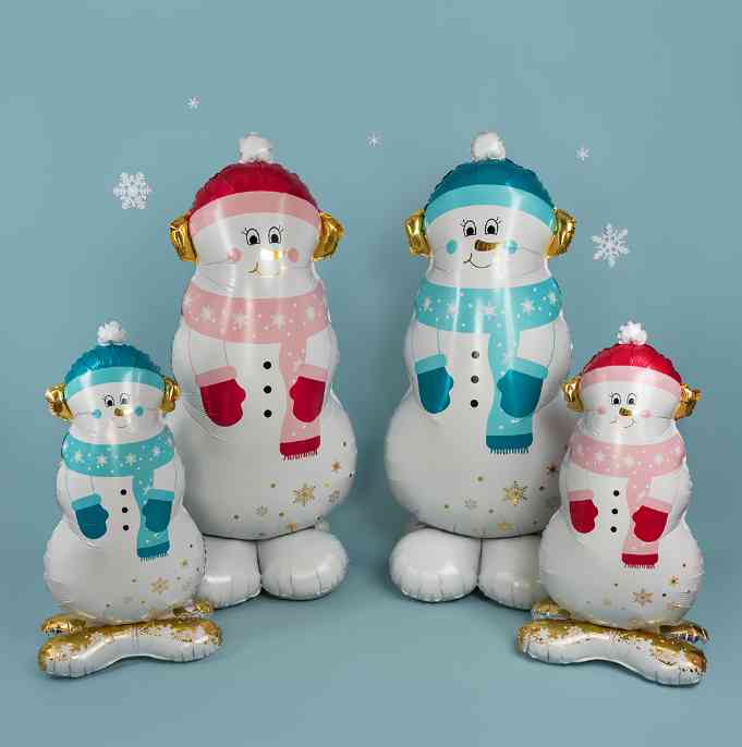 Шар фольга фигура на подставке Снеговик в розовом шарфе 47" 119смFL