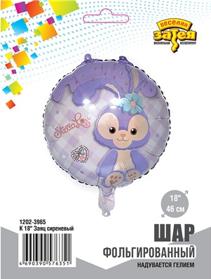 Шар фольга с рисунком 18"/ВЗ круг Заяц сиреневый