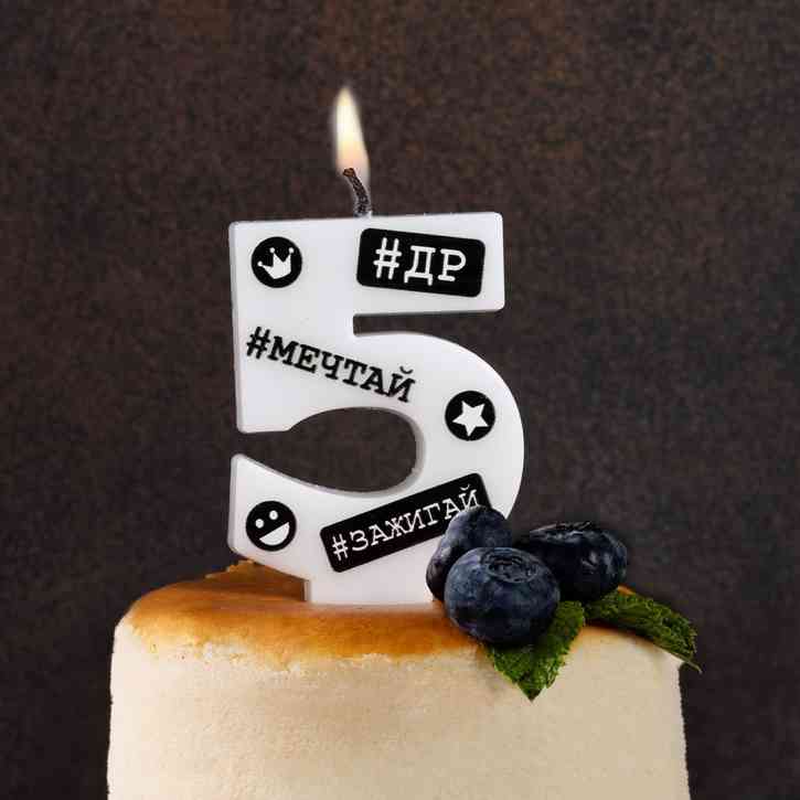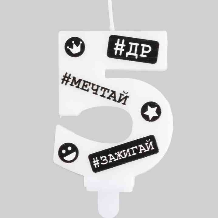 Свеча цифра "5" С ДР Хештеги 7,5смЕУТ