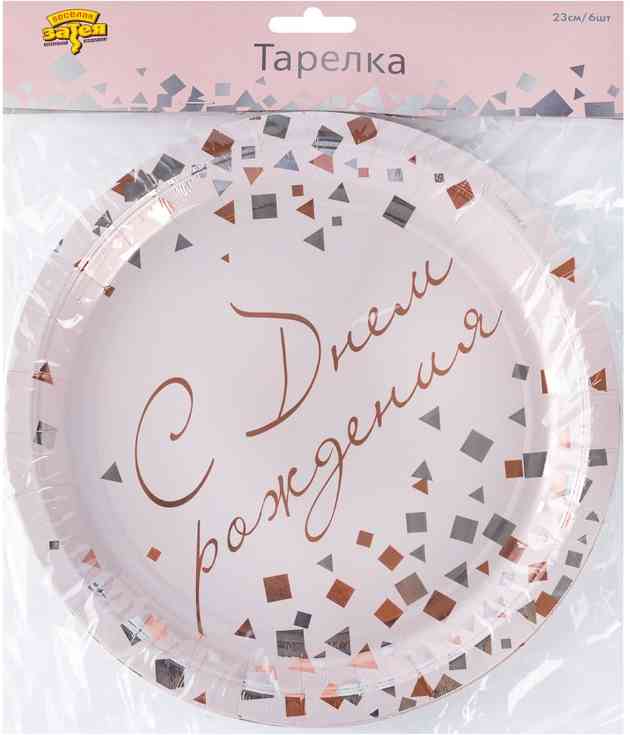 Тарелки бумага С ДР Конфетти Party розовый 230мм (уп6)ВЗ