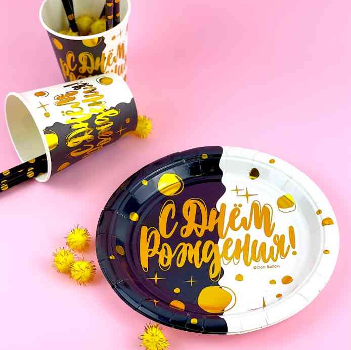 Мерцание и блеск фольгированных элементов на стильной одноразовой посуде станет дополнительным украшением торжества, а также поможет минимизировать время организации знаменательного события.