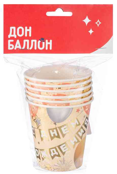 Стаканы бумажные 250мл С Днем Рождения Флажки (уп6) ВВ