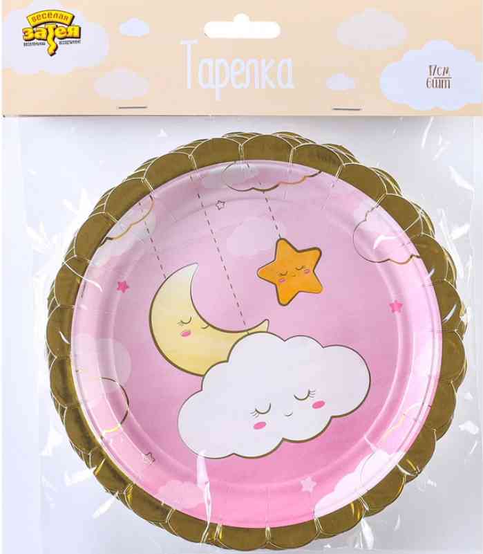 Тарелки бумажные 17 см, 6 шт. Детские грёзы, розовые
