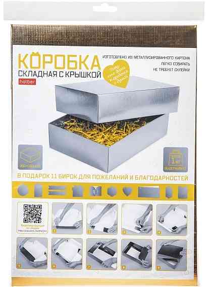 Коробка сборная квадрат 18х18х6,5см METALLIC Золото