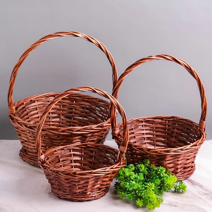 Плетеные корзины из ивы - прекрасное решение для оформления подарочных наборов и цветочных композиций. Корзина выполнена из прочного натурального материала, эстетична, приятна на ощупь и долговечна.