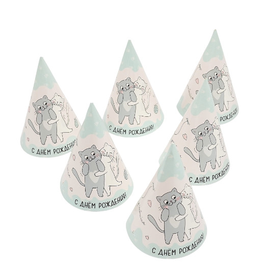 Колпаки бумажные 6 шт. С днём рождения! Милые котики