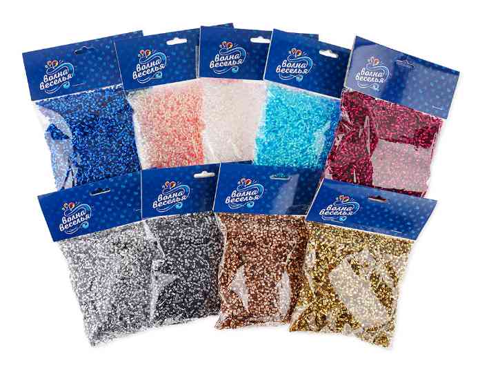 Мелко нарезанная фольга в виде цилиндрических трубочек. Используется для декорирования или создания "шара сюрприза".