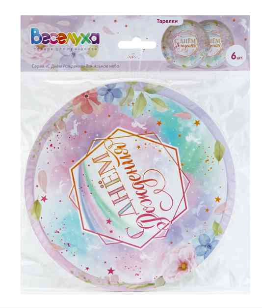 Праздничные тарелки "С Днем Рождения" Ванильное небо идеально украсят праздничное мероприятие. Тарелки подходят как для холодных, так и горячих блюд.