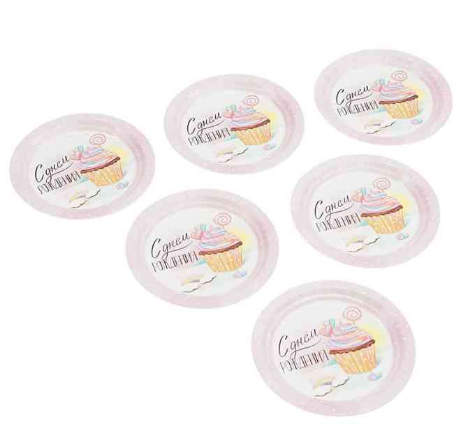Тарелки бумажные Сладкий День Рождения 180мм (уп6) ВС