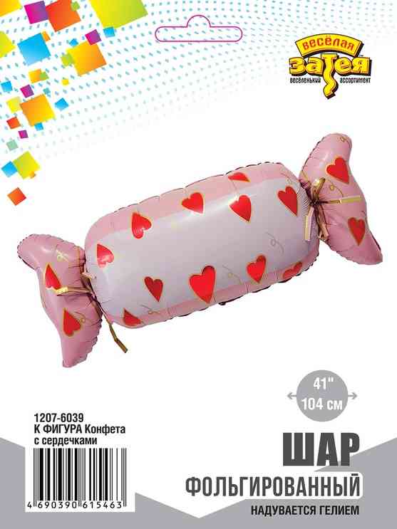 Шар фольга фигура Конфета с сердечками 41" 104смВЗ (упак)