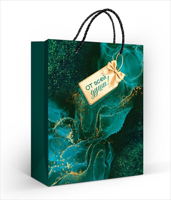 Пакет бумажный M 18х22см Мраморный эмеральд ОП