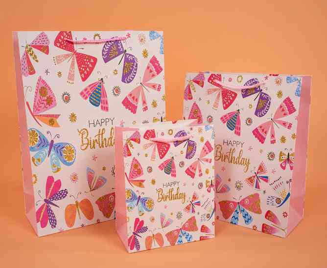 Пакет бумажный M 18х23см Happy Birthday Лето Дизайн №4 с блестками