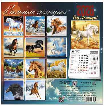 Календарь настенный 2026 12 л, 20*20 см Год лошади. Вольные скакуны