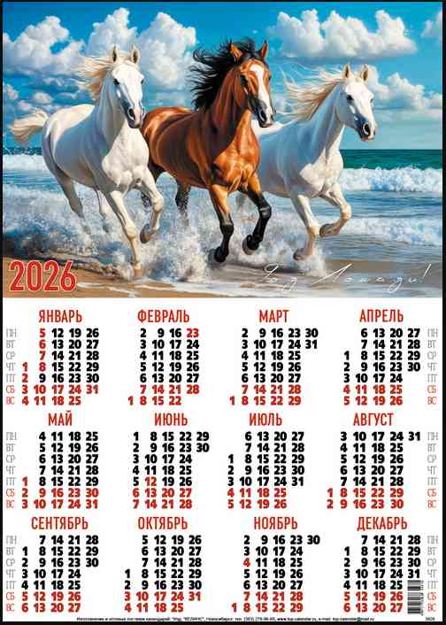 Календарь 2026 листовой А3 лак в ассортиментеКелинс