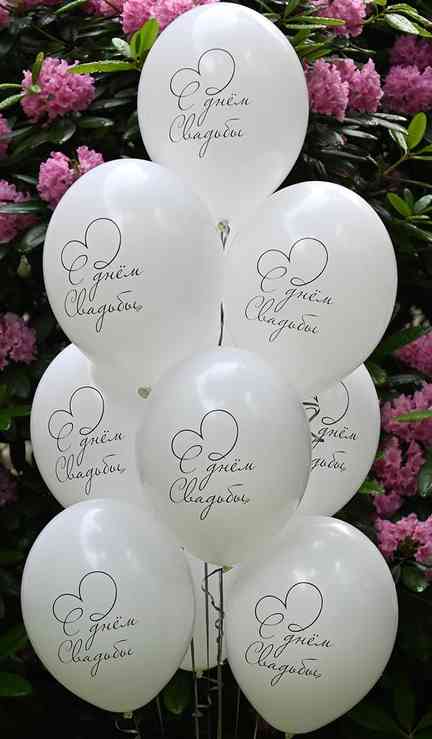 Высококачественный шар из натурального латекса. Белые шары, одного типа - пастель - матовый оттенок цвета, с надписью "С Днем Свадьбы". Идеальный ассортимент для розничной продажи воздушных шариков и украшения праздника. Воздушные шары изготавливаются из экологически безопасного 100%-ного натурального латекса. В окружающей среде разлагаются на безопасные компоненты примерно с той-же скоростью, как обычные листья деревьев. После использования лопнуть и утилизировать как бытовой отход. Свадьба. Молодожены.