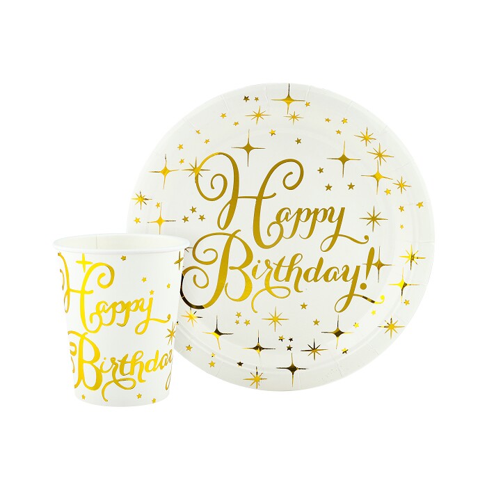 Тарелки бумага 180мм Волшебный ДР Белый Золото металлик уп6