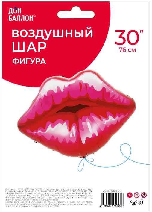 Шар фольга фигура Губы Красный 30" 76смFL (упак)