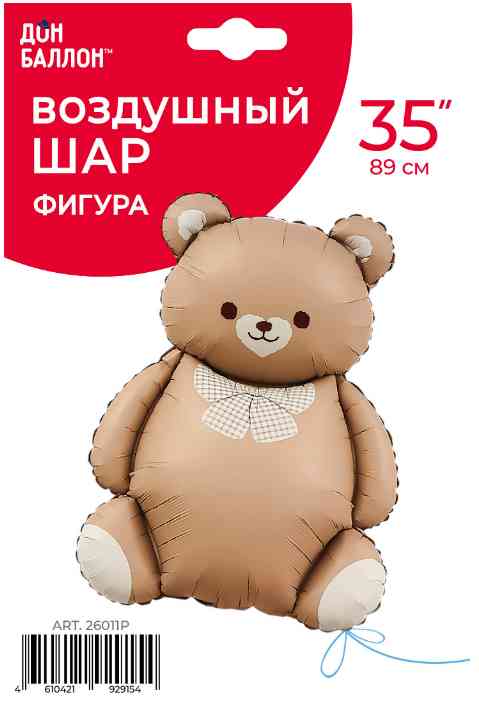 Шар фольга фигура Мишка с бантом Коричневый Сатин 35" 89смFL (упак) (медведь)