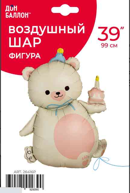 Шар фольга фигура Мишка с кексиком Кремовый Сатин 39" 99смFL (упак) (медведь)