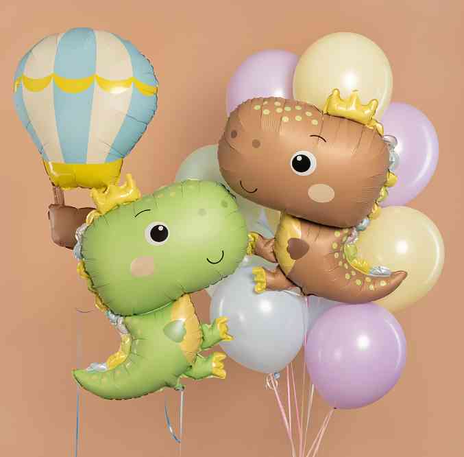 Шар фольга фигура Динозаврик в короне Бежевый Сатин 31" 79смFL (упак)