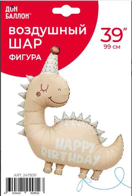 Шар фольга фигура Динозаврик в колпачке Сатин 39" 99смFL (упак)