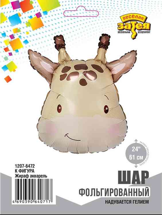 Шар фольга фигура Жираф акварель (голова) 24" 61смFL (упак)