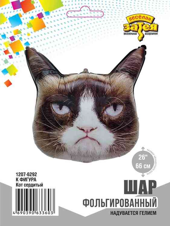 Фигурный фольгированный шар в форме кота с невозмутимо недовольной мордочкой станет идеальным "подарком" для тех, кто празднует День Рождения без особого энтузиазма. Его яростно-равнодушный взгляд словно говорит: "Да, поздравляю, ты стал на год старше. Ну и что?". Шар изготовлен из качественных материалов (полимерная фольгированная пленка). Имеет встроенный клапан -что упрощает надувание. Для того чтобы шар летал рекомендуется надувать его гелием. Поставляется в красочной упаковке с цветным изображением шара, благодаря чему можно выставлять товар в сдутом виде. Размер шара в ненадутом виде 57 см (Ш) * 61 см (H). Этот шар добавит нотку сарказма в декор, а также веселья и энергии в оформление мероприятия. Внимание! Реальный цвет товара может незначительно отличаться от представленного на фотографии в зависимости от настроек вашего монитора.