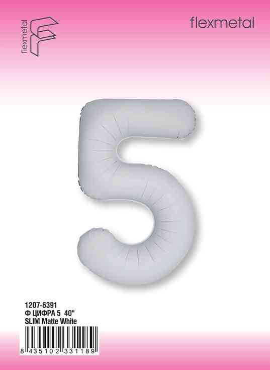 Шар фольга Цифра 40"Fm Slim Белый Матовый Matte White "5" (упак)