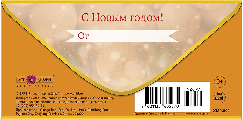 НГ Конверт для денег Время чудес и мандаринок АртД