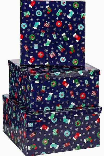 НГ Набор коробок квадрат 3 в 1 19,5х19,5х11см Носочки и подарки