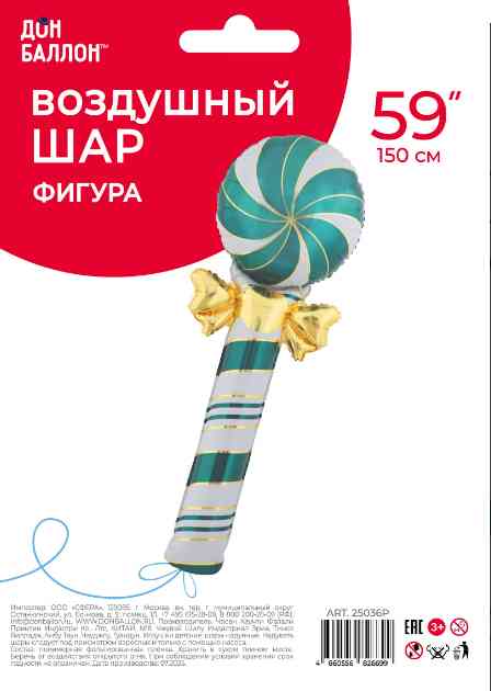 НГ Шар фольга фигура Леденец трость с бантом ЗеленыйЗолото 59" 150смFL (упак)