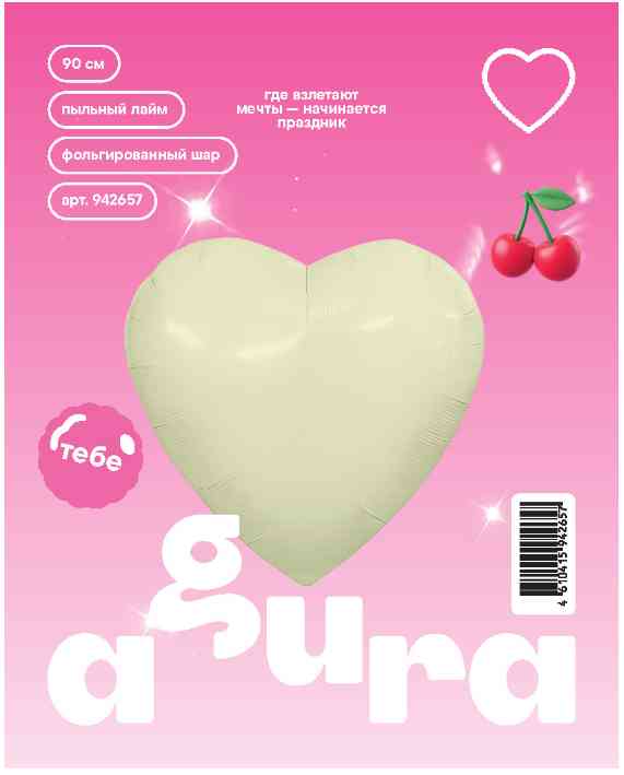 Шар фольга без рисунка 36"AG Сердце пастель Пыльный лайм