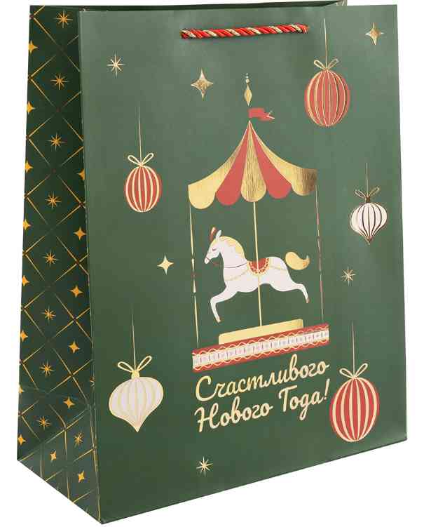 НГ Пакет бумажный M 18х23см Счастливого Нового Года! карусель Металлик