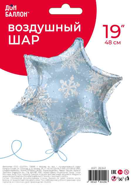 НГ Шар фольга фигура Снежинка Морозные искры ГолубойСеребро 19" 48смFL (упак)