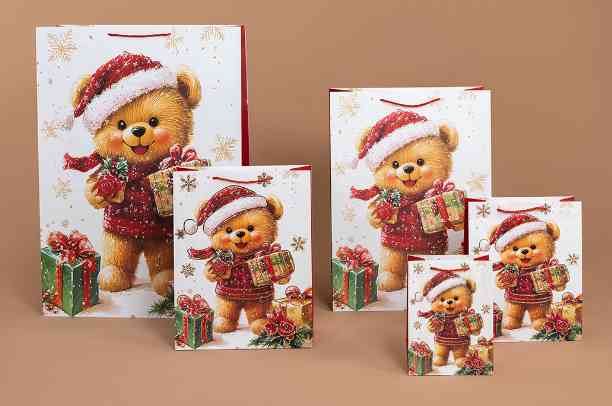 НГ Пакет бумажный M 18х23см Новогодний мишка Дизайн №2 Металлик