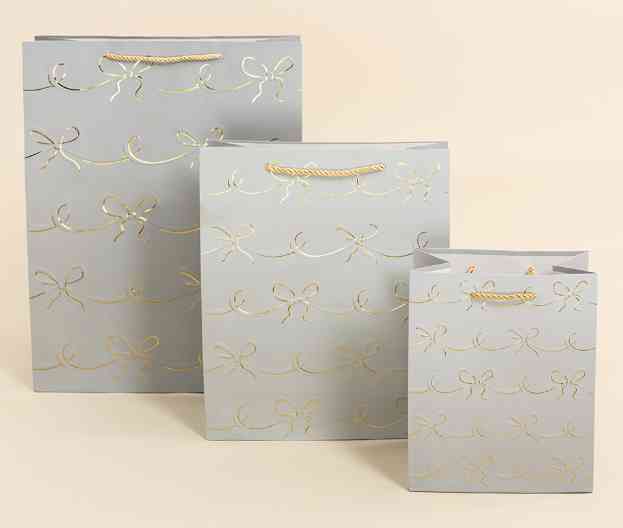 Пакет бумажный XL 31х41см Милые бантики Дизайн №1 Серебро Металлик