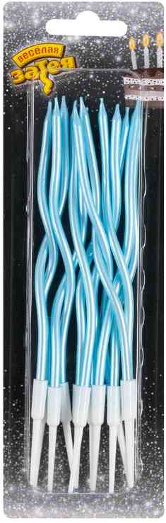 Свечи в виде тонких нежно-голубых спиралек с подставками, изящное украшение для Вашего торта. Главное, успеть загадать желание, глядя на искрящийся каскад свечей. В упаковке 12 штук высотой 13см.