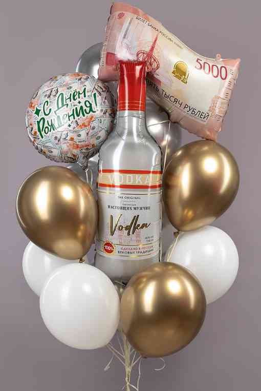 Шар фольга фигура Бутылка Водка для настоящих мужчин 37" 94см FL (упак)
