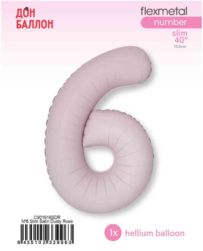 Шар фольга Цифра 40" Fm Пыльная роза Сатин "6" (упак)