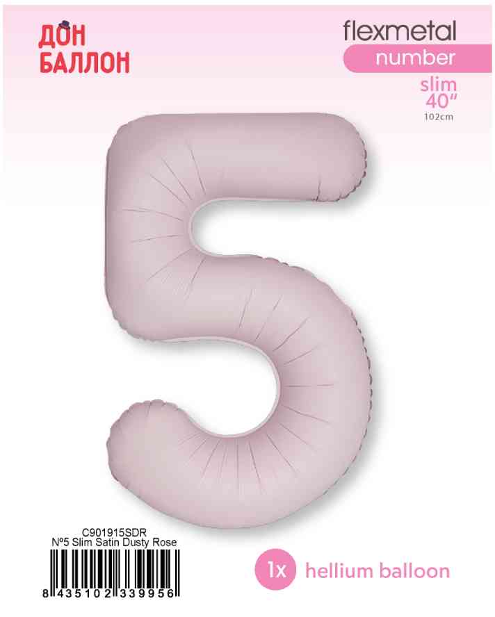Шар фольга Цифра 40" Fm Пыльная роза Сатин "5" (упак)