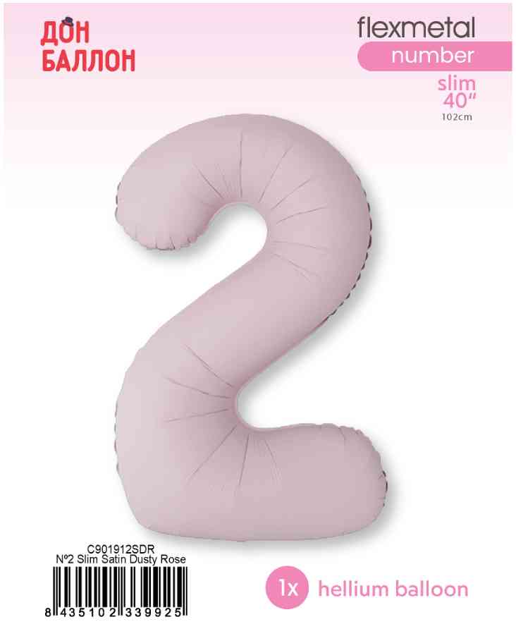 Шар фольга Цифра 40" Fm Пыльная роза Сатин "2" (упак)