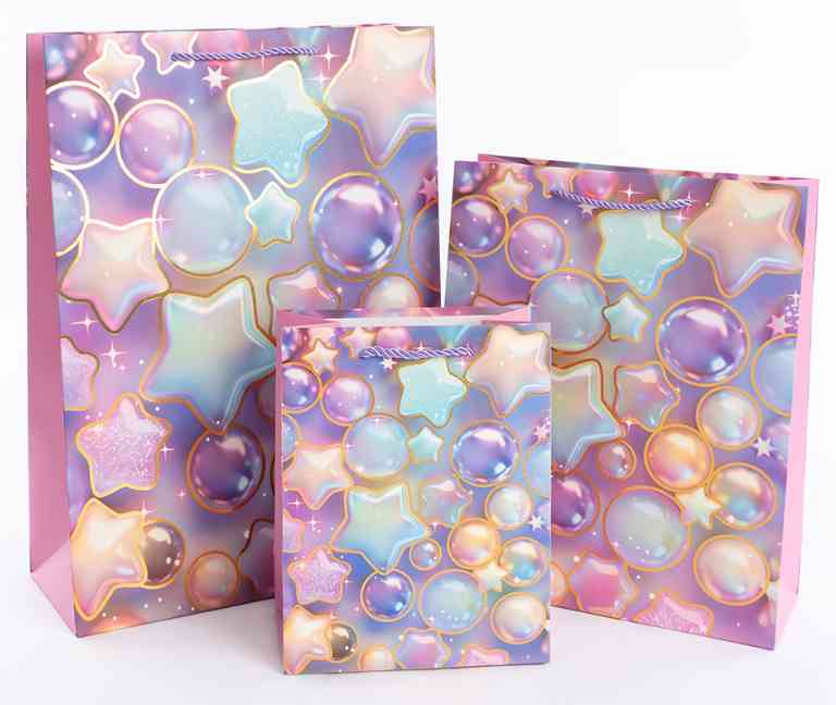 Пакет бумажный M 18х23см Волшебные звезды Дизайн №4 Металлик ДБ