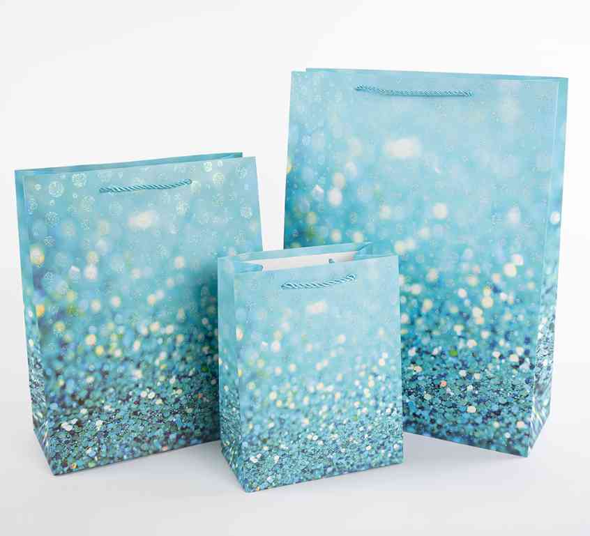 Пакет бумажный M 18х23см Гламур Дизайн №3 Голубой с блестками ДБ