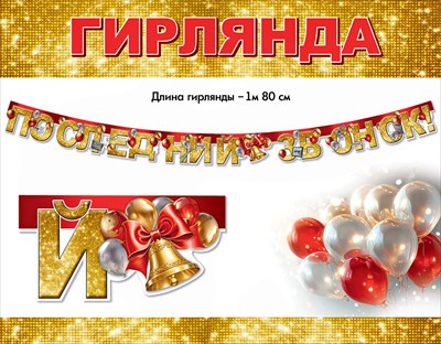 Гирлянда буквы Последний звонок 1,5-1,99м Праздник