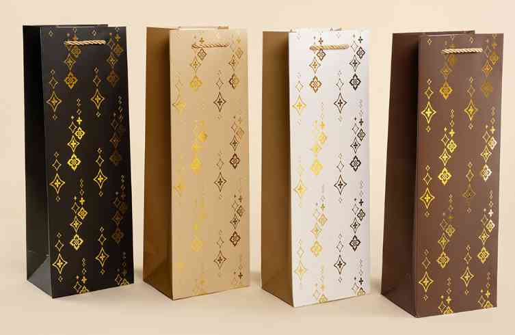 Пакет под бутылку ST 12х35см Сверкающие звезды Дизайн №1 Металлик ДБ