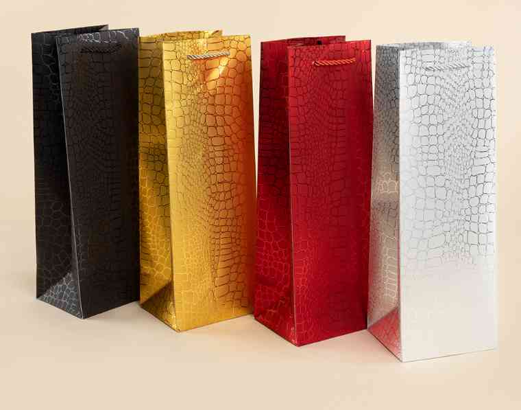 Пакет под бутылку ST 12х35см Кожа крокодила Серебро Металлик ДБ