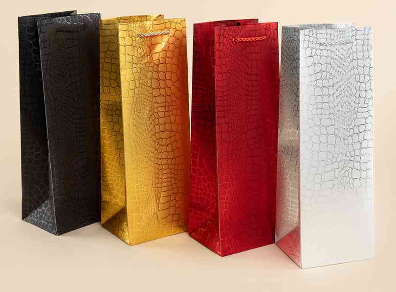 Пакет под бутылку ST 12х35см Кожа крокодила Красный Металлик ДБ