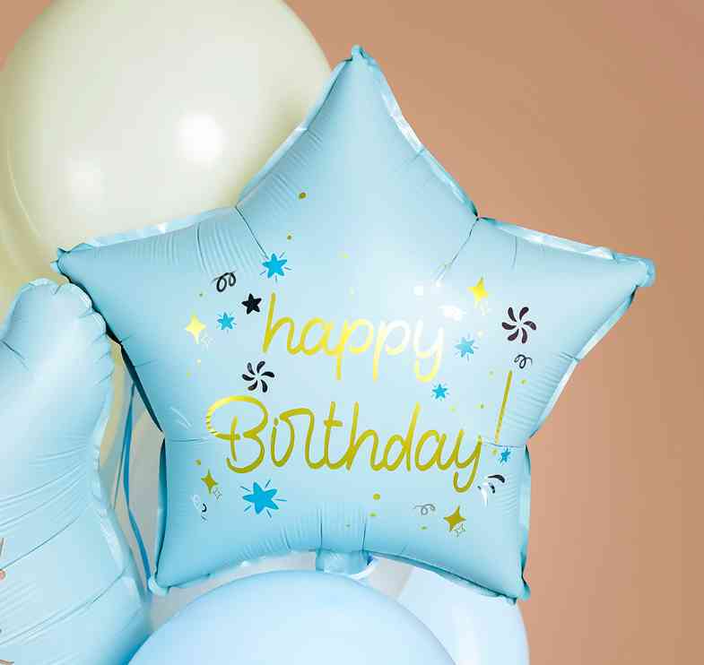 Шар фольга с рисунком 18" FL звезда Happy Birthday Звездочки Голубой Сатин